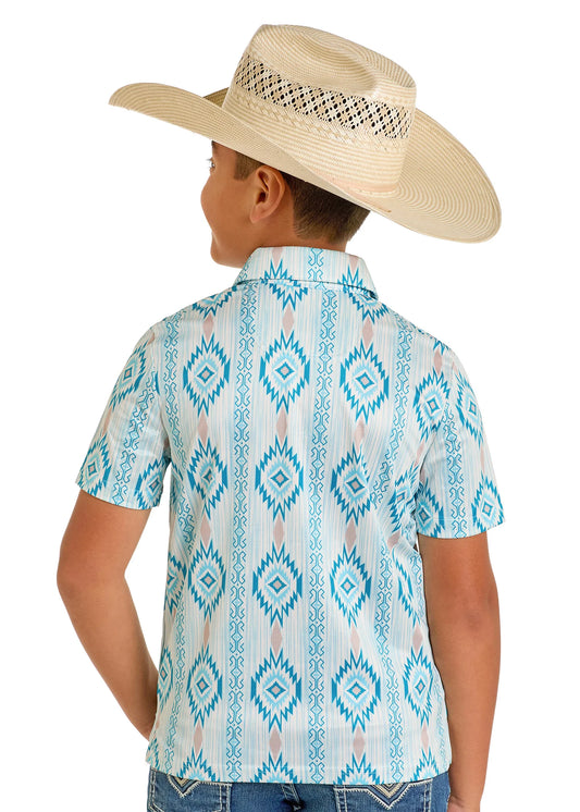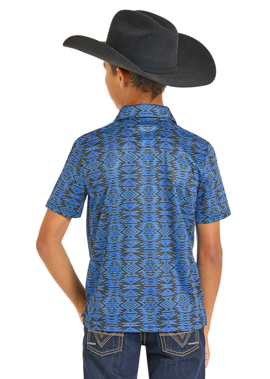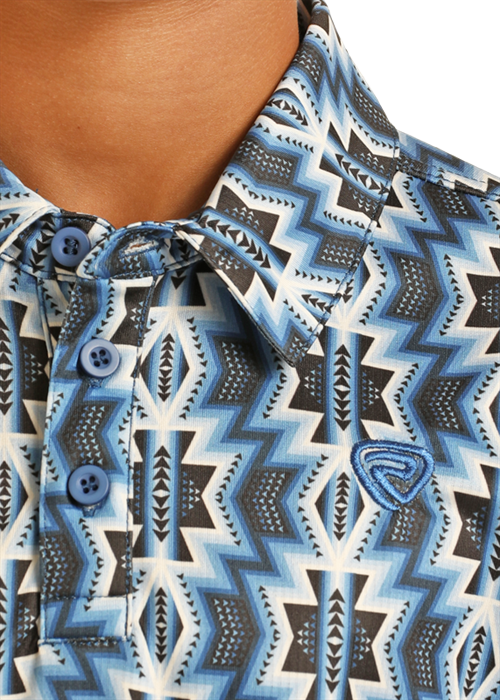 Sold outRock & Roll Youth Aztec Polo - Blue