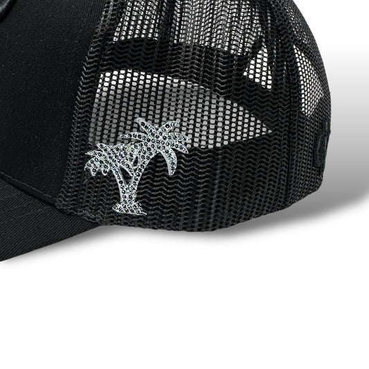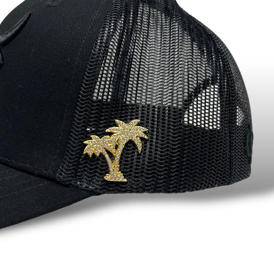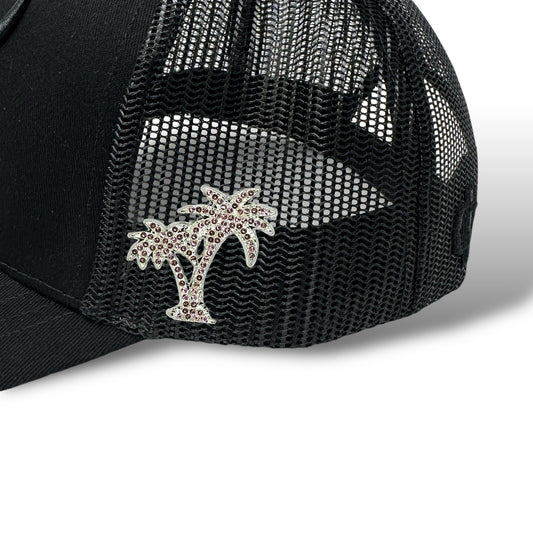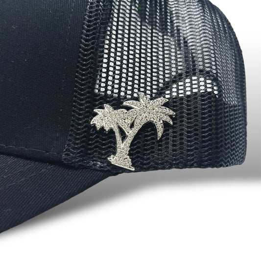 Iced Out Palm Tree Hat Pin - Silver/Rose