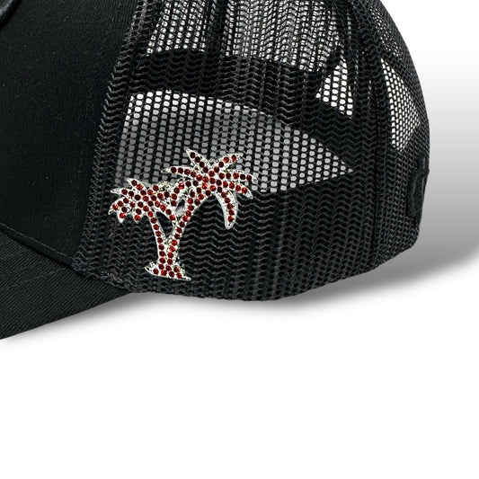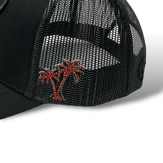 Iced Out Palm Tree Hat Pin - Silver/Red