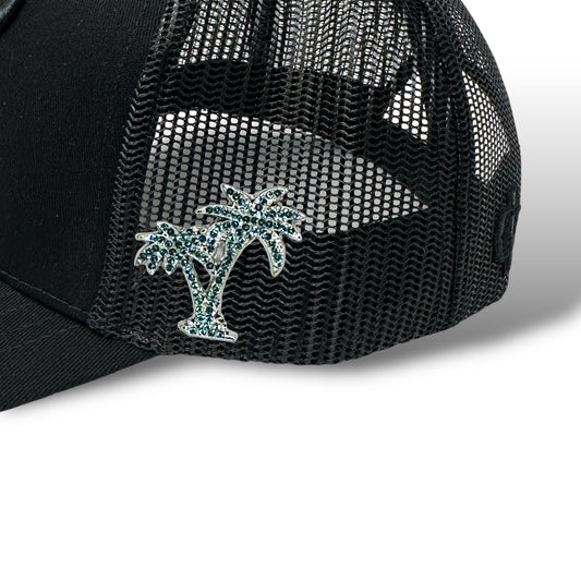 Iced Out Palm Tree Hat Pin - Silver/Turquoise