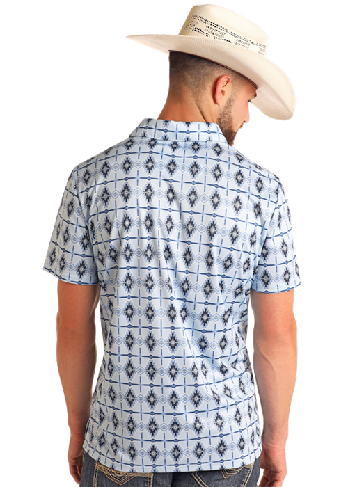 Rock & Roll Denim Aztec Polo - Baby Blue (5992)