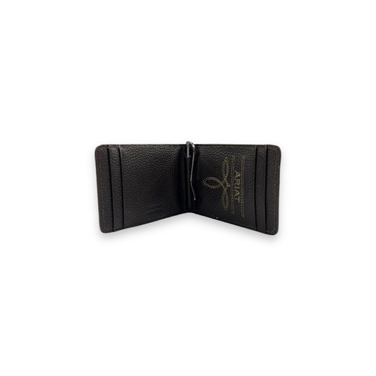 Men's Ariat Bi-Fold Money Clip Wallet - Brown Scrolling Embossed