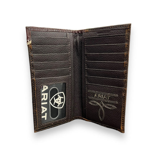 Men's Ariat Rodeo Wallet/Checkbook Cover - Rodeo Bull Hide Brown