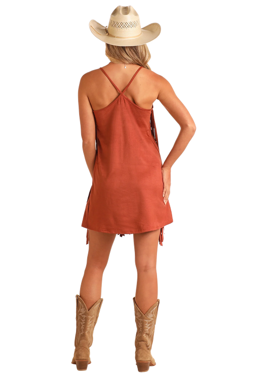 Women's Rock&Roll Denim Microsuede Fringe Dress - Camel