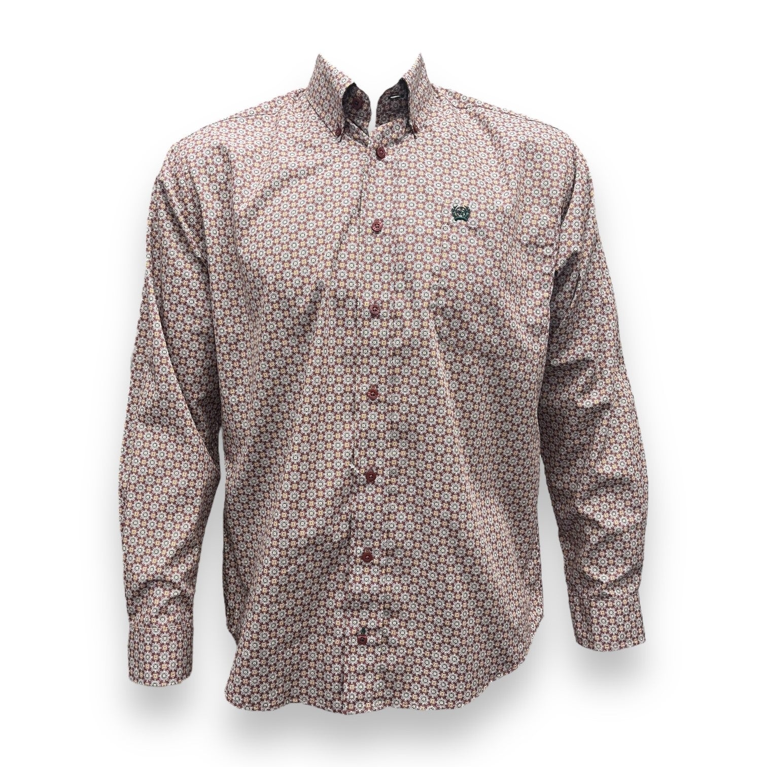 Cinch Regular Fit Button Down Long Sleeve Shirt - Burgundy/Orange Print